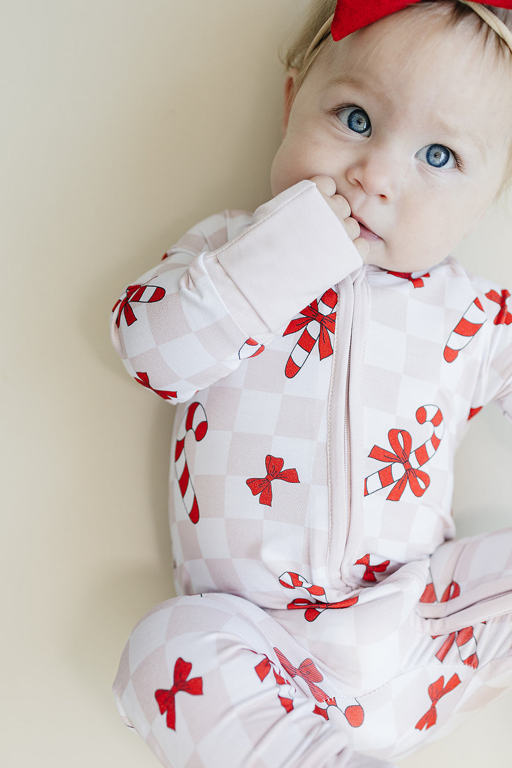 Bamboo Zip Romper | Bows & Candy Cane